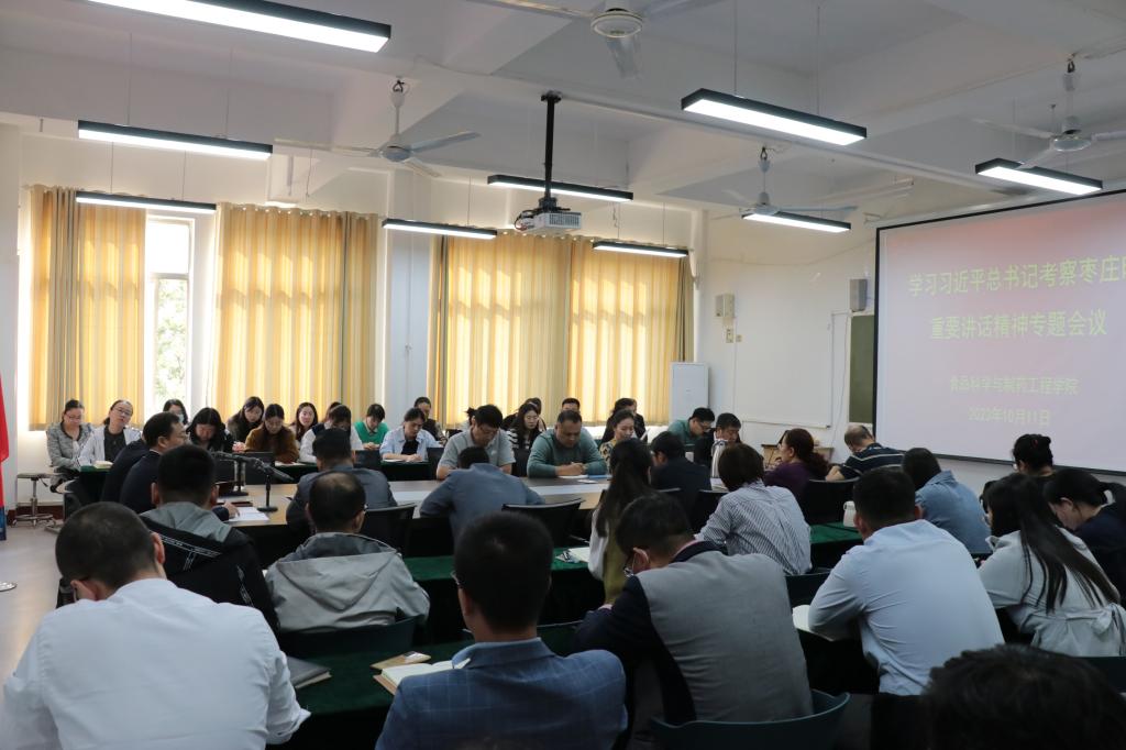 10月11日下午,beat365中文官方网站在文科楼213会议室召开全体教工会议,传达学习习近平总书记考察枣庄的重要讲话精神。学院党政领导及全体教职员工参加会议。