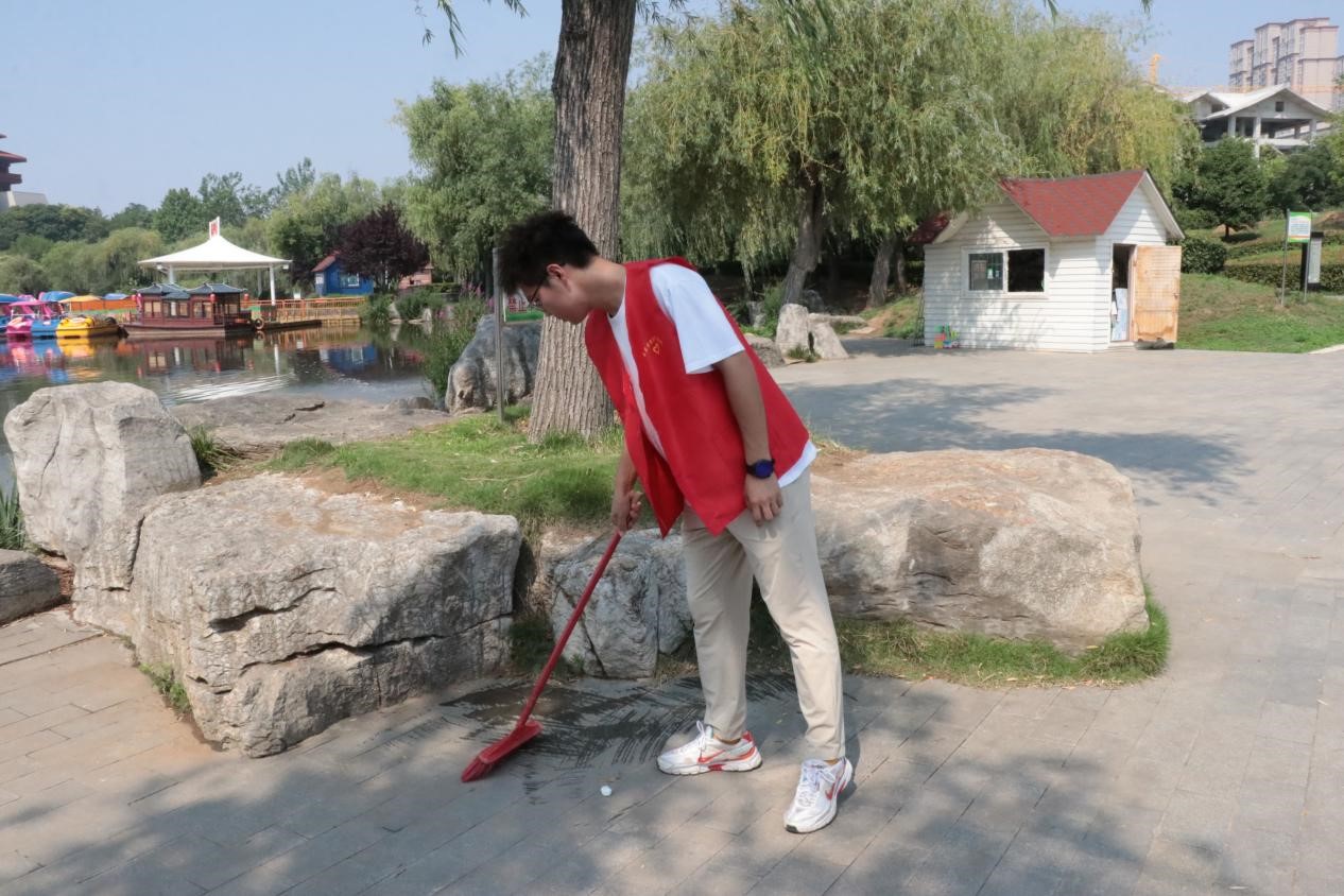 为进一步推进主题教育走深走实,扎实开展“我为群众办实事”主题教育社会实践活动,引领学生在社会实践中受教育、长才干、做贡献,6月14日,beat365中文官方网站志愿者赴市中区衡山路东湖公园开展“我为群众办实事”社会实践活动。
