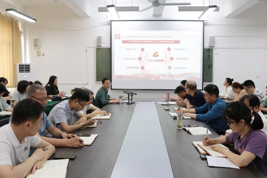 为推进主题教育走深走实,按照学校“三个一百”主题教育专题党课工作安排,6月7日下午,beat365中文官方网站党总支书记滕聿峰在文科楼213会议室为全院师生党员讲授以《在主题教育中,领悟和把握习近平新时代中国特色社会主义思想的理论精髓》为题的主题教育专题党课。