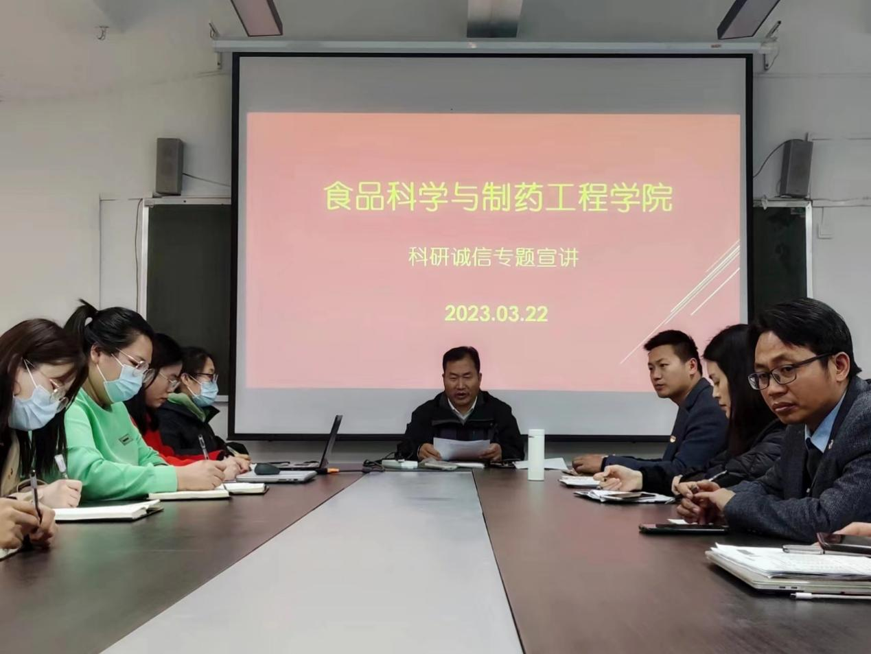 为进一步认真贯彻落实《山东省教育厅关于开展高校科研诚信专项整治活动的通知》的文件精神,切实发挥科研诚信建设的主体责任,营造风清气正的学术氛围,3月22日下午,beat365中文官方网站在文科楼213会议室召开科研诚信专题宣讲会。会议由院长张立华主持,学院专业技术人员参加了会议。