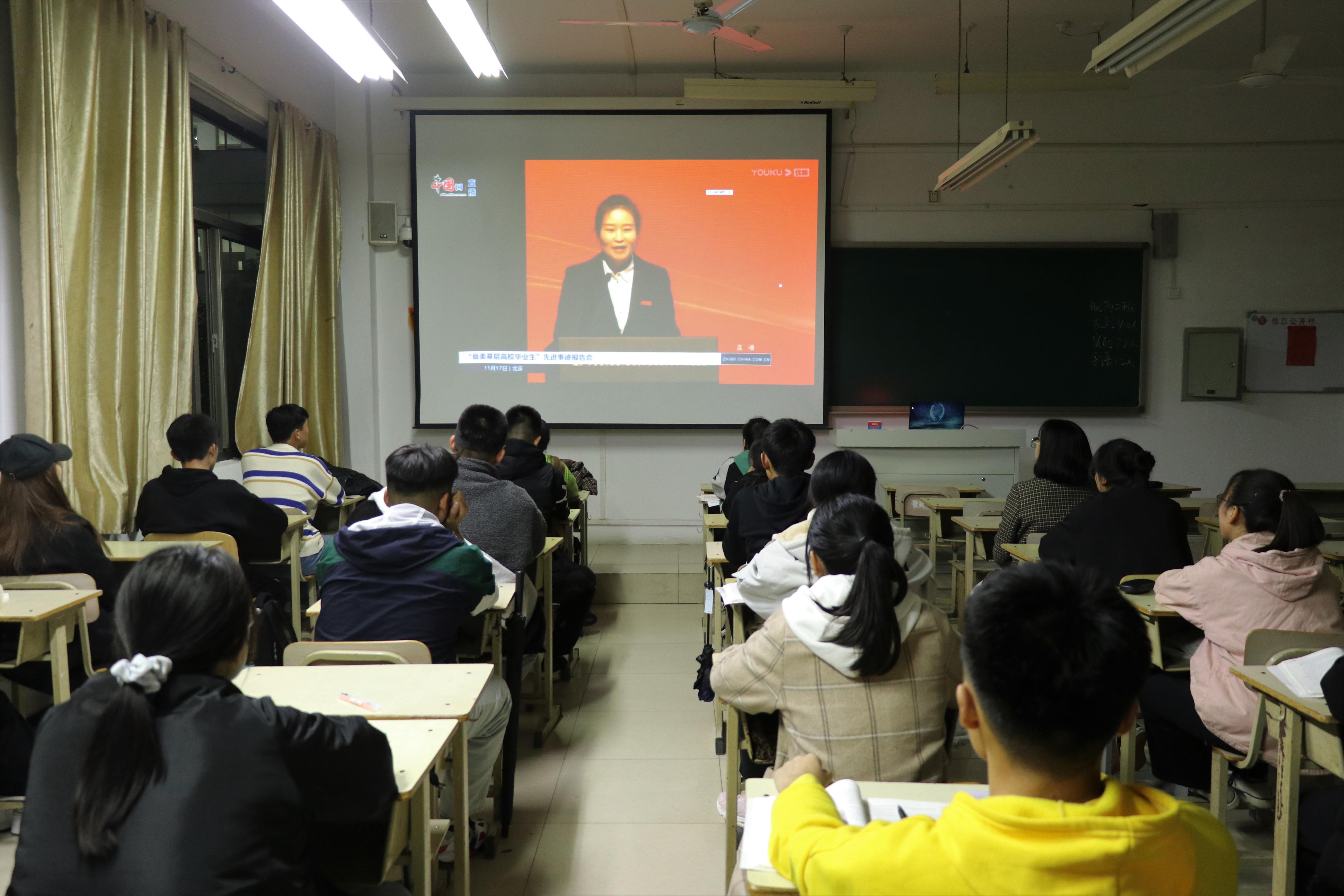 11月17日下午,学院组织2020级同学分班级观看“最美基层高校毕业生”事迹报告会,学习王辉等“最美基层高校毕业生”在高校毕业后投身基层的先进事迹。在他们当中,无论是为坚守三尺讲台而致力于教育事业的李晶,还是为助力乡村振兴而创新农村发展道路的齐晓景,都展现了当代大学生的理想信念、爱国情怀和使命担当。通过观看学习,同学们纷纷表示,将以“最美基层高校毕业生”作为榜样,做新时代中国特色社会主义事业的有力建设者。