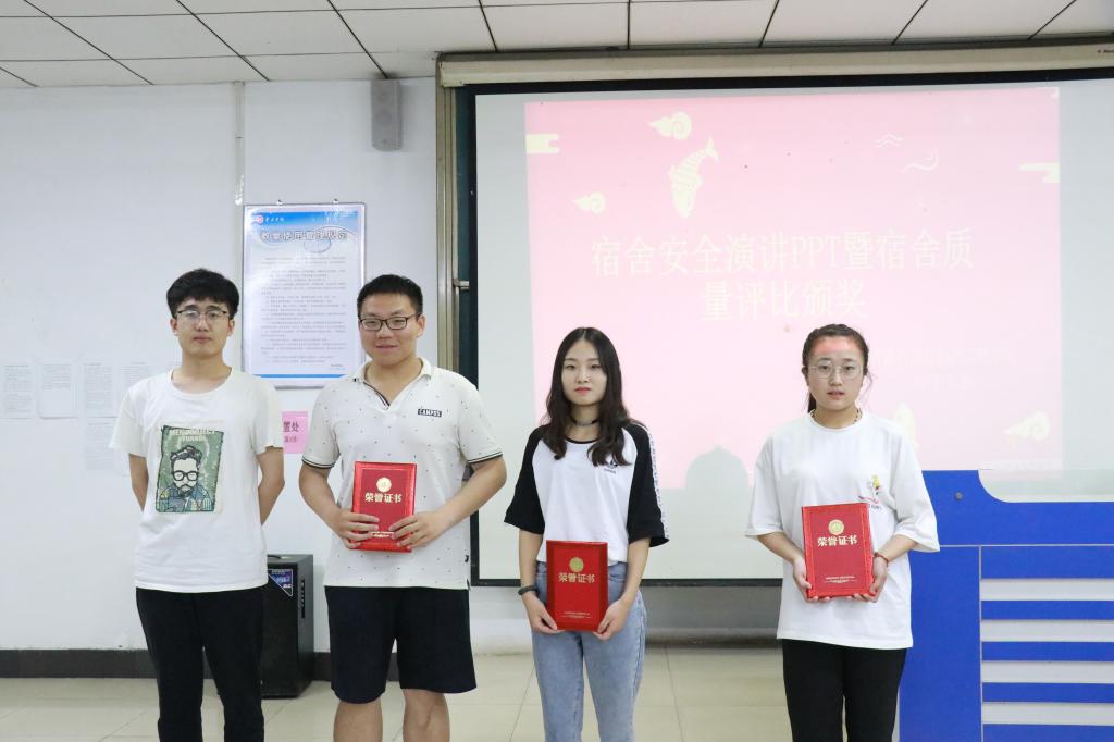 本次活动主要包括两环节,首先是宿舍安全演讲PPT展示,选手们通过应用PPT和激情的演讲,联系宿舍安全实际,解说了宿舍存在的安全隐患以及防护措施,目的在于提高了同学们的安全意识。第二个环节是对宿舍质量评比活动中获奖宿舍进行颁奖,经综合评比有B617宿舍获得一等奖,C606、316、B622宿舍获得二等奖,415、C602、418、B614、314宿舍获得三等奖。