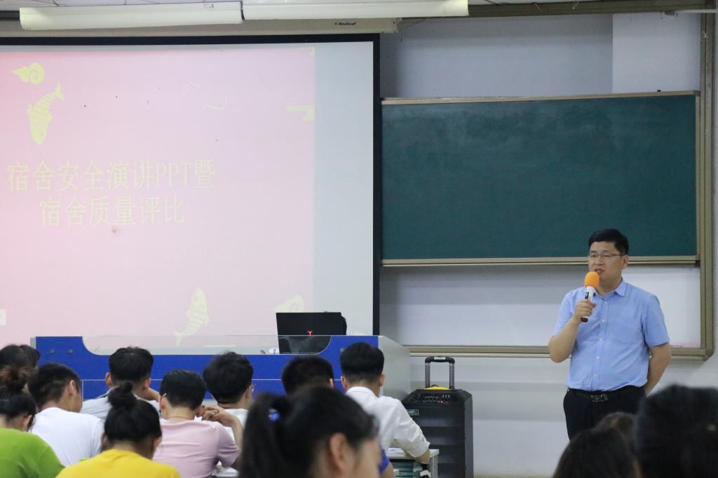 为进一步加强学生自我安全意识、增强学生自我管理服务能力,beat365中文官方网站于5月26日晚在理工楼2205教室举办了“宿舍安全演讲PPT暨宿舍质量评比”活动,参加本次活动的有院党总支副书记周玉亮老师和校寓管会副主席庄康宁同学,食药院学生会干部和18级全体同学参加了会议。