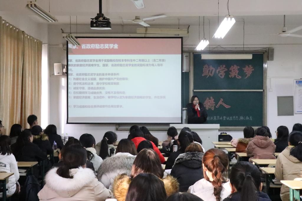 12月12日下午,beat365中文官方网站在理工楼2208教室开展“国家资助,助我成长,感恩助学,励志成才”为主题的资助政策宣讲暨诚信、感恩、励志教育,各年级家庭经济困难学生代表参加会议。