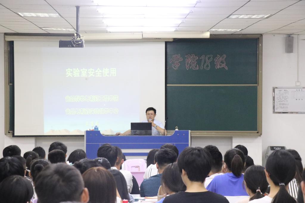 10日晚,实验室主任王京龙博士为全体新生做了实验室安全教育专题讲座。讲座围绕学院实验室基本情况、实验室安全的重要性、实验室常见安全问题、突发事件应对措施、实验室安全知识等方面展开。他通过自身学习、工作中遇到过的实验室安全事故实例,告诫学生实验室安全的重要性,进一步强调了牢固树立实验室安全意识、严格遵守实验室安全工作要求的重要意义。