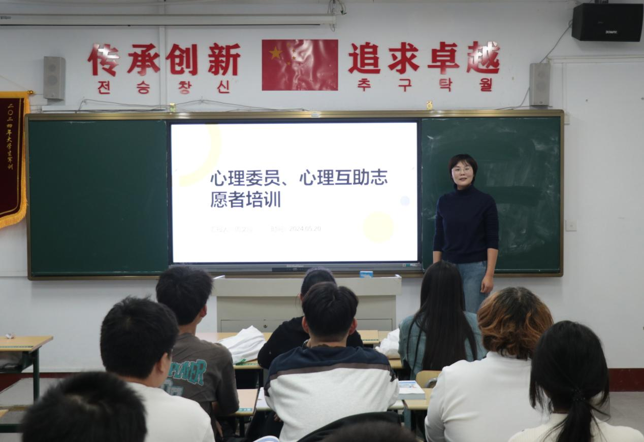为充分发挥四级心理健康教育工作网络作用,切实提升心理委员与心理互助志愿者的服务水平,beat365中文官方网站于4月19日在文科楼216教室举办了心理委员工作培训会。学院心理辅导员周文灿老师主讲,2022、2023级心理委员和心理互助志愿者参加。